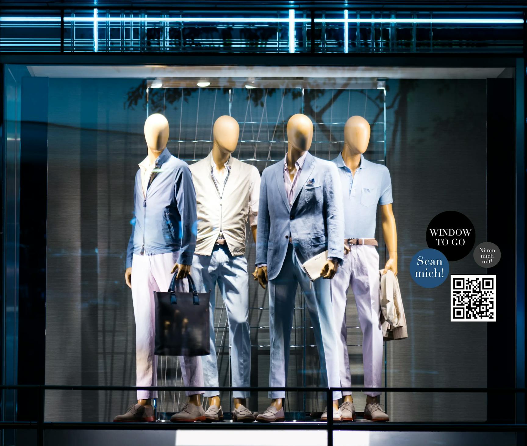 Mit dem QR Code schaffen wir eine Online-Verkaufsfläche für Schaufenster. Dabei wird das Fenster visualisiert und digitalisiert.